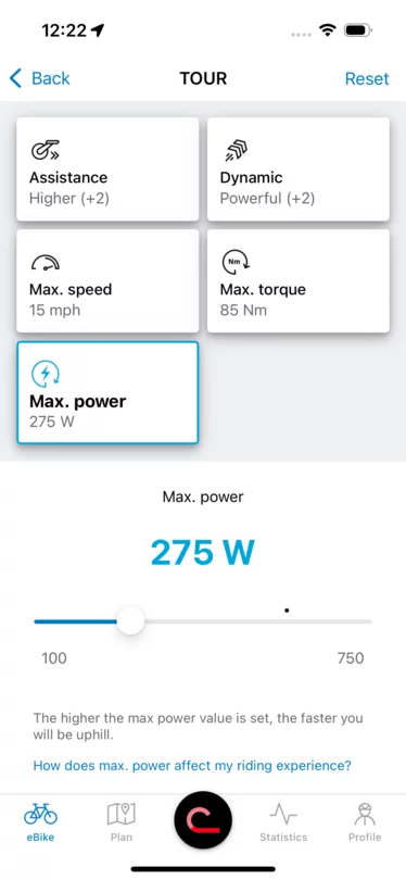 The maximum power can be individually adjusted in 25-watt increments โ to suit your own riding style and route.