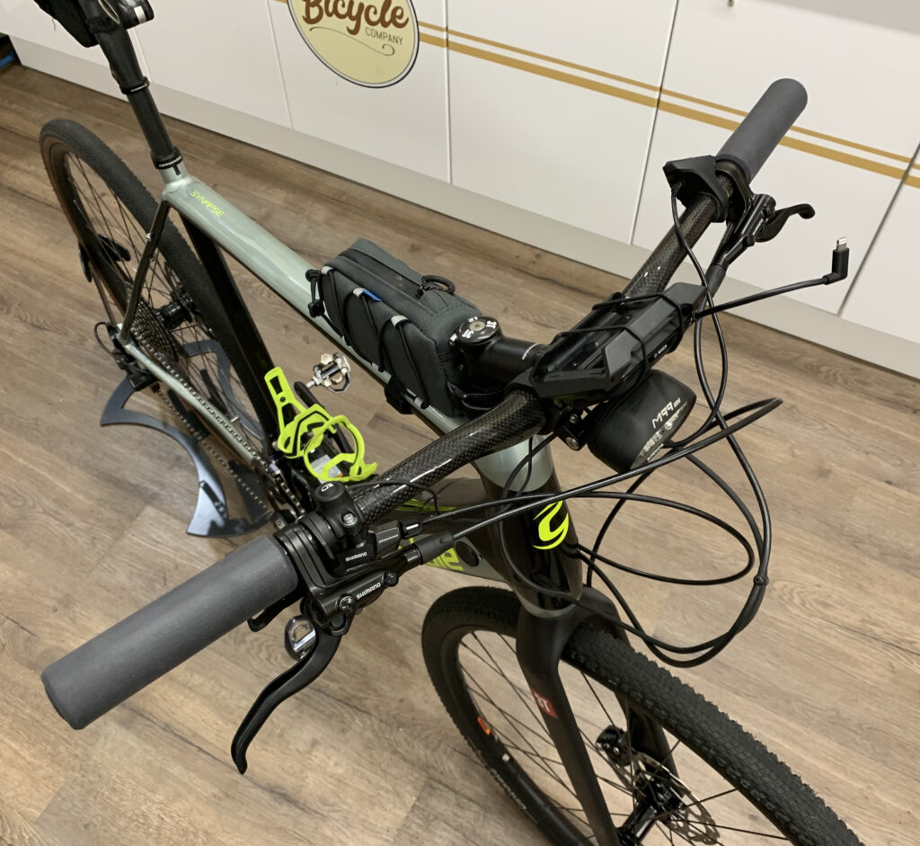 This Cannondale Synapse Neo is a high-perfomance ‘Endurance’ road bike, modified as an eGravel bike: