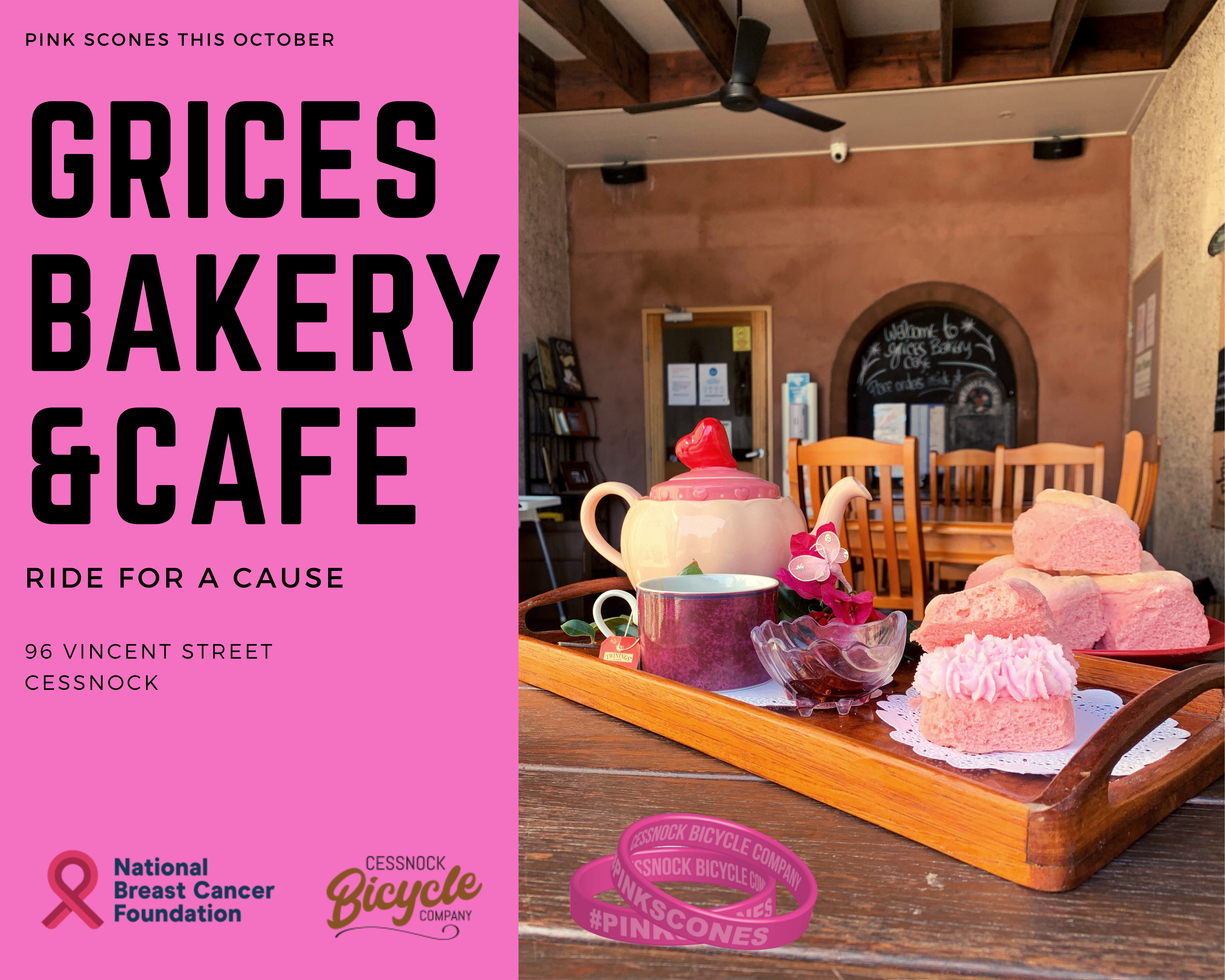 Today is October 1st, and we’re kicking off National Breast Cancer Awareness Month with our #pinkscones initiative. During the month of October, ride your bike to Grice’s Bakery & Cafe in Cessnock, or to the wonderful Millfield Store, and have some pink scones and a coffee. They’ll donate 50c from every scone to the National Breast Cancer Foundation. https://nbcf.org.au