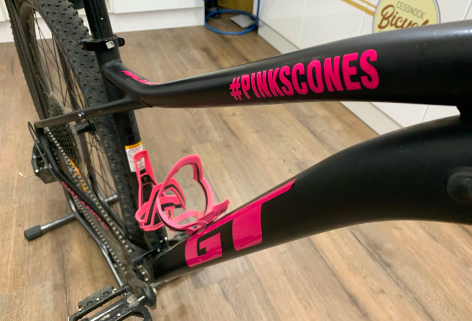We’re in the middle of #pinkscones month for Breast Cancer, so what better way to get the pink message out there than this customised GT Avalanche Elite by the team at Sign Style for our ride leader Emily MunnWe’ve done a few custom graphics now – what will you choose?
