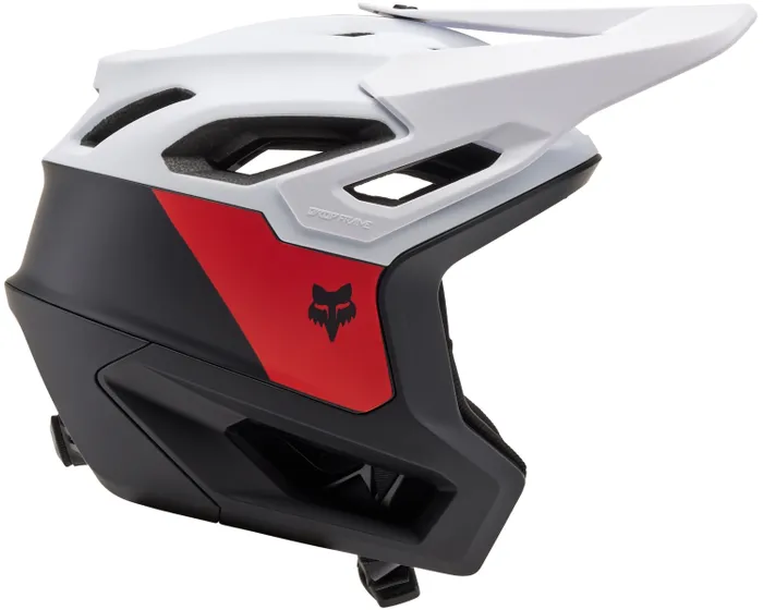 The FOX Dropframe Pro NYF AS MIPS MTB Helmet in Black/White is an open-faced 3/4 enduro helmet that offers confidence-inspiring coverage.