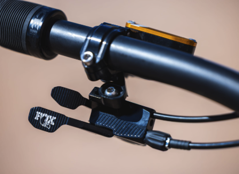 The lower one interacts with your dropper post and is, in fact, identical to the one used on the standalone remote for Transfer SL droppers. It has the same shape and knurling on the trigger, along with the smooth and effortless operation that Fox is famous for.